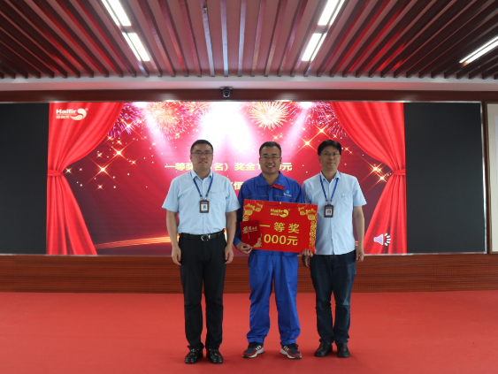 ? ? ? ?在熱烈的掌聲中,在場評委為獲獎(jiǎng)隊(duì)員頒獎(jiǎng),同時(shí)在現(xiàn)場還對前期參加安全征文比賽獲獎(jiǎng)的人員進(jìn)行了頒獎(jiǎng)。安全征文一等獎(jiǎng)獲得者——來自恒寧工廠的孫正正代表獲獎(jiǎng)?wù)甙l(fā)言,孫正正分享了自己的安全工作心得,并勉勵(lì)大家感恩平臺、學(xué)習(xí)成長,傳遞海利爾正能量。